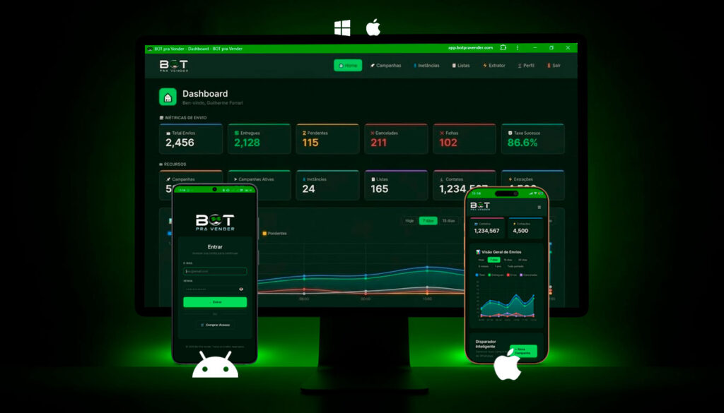 É uma plataforma SaaS de automação de prospecção que permite gerenciar campanhas de mensagens, organizar contatos e escalar processos comerciais com controle inteligente de envios.